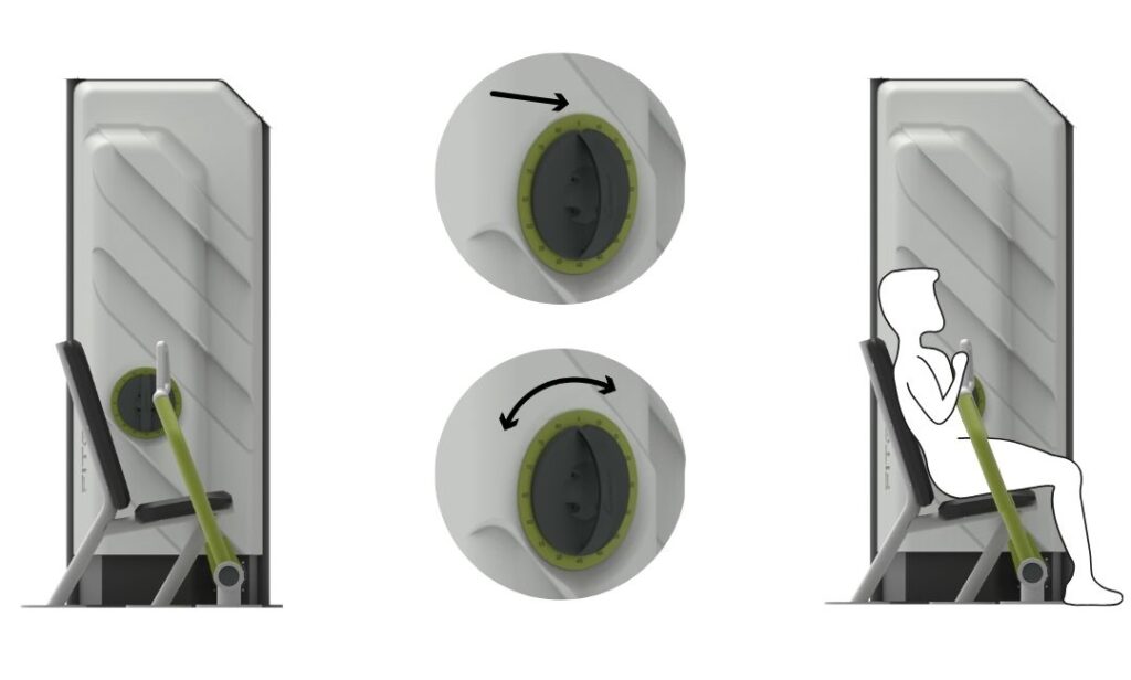 Pull and turn the handle towards yourself to adjust the resistance level between 10 and 80 kg as desired.